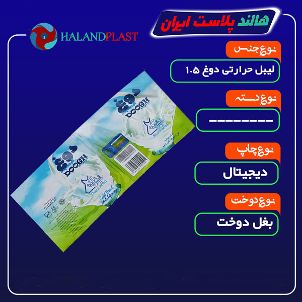 4- لیبل دوغ چیست؟ لیبل بطری دوغ در واقع یک برچسب هست که بر روی بطری دوغ چسبونده می شه تا اطلاعات مربوط به مشخصات اون محصول رو به خریدار ارائه بده. این اطلاعات می تونه شامل نام تولید کننده، تاریخ تولید، تاریخ انقضا، قیمت، مواد تشکیل دهنده و سایر اطلاعات از این نوع باشه.